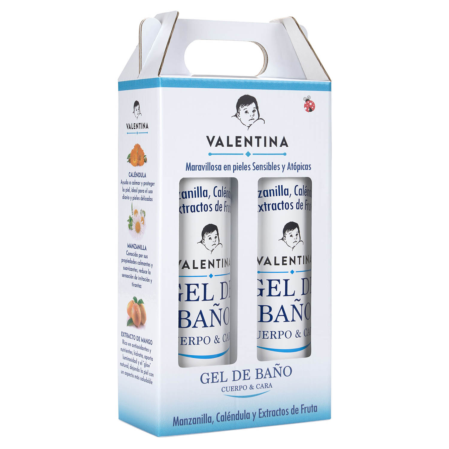 Pack de 2 unidades de gel de baño para cuerpo y cara. Ahorra comprando el pack doble. Ideal para toda la familia con ingredientes naturales como manzanilla y caléndula. Funciona muy bien en pieles sensibles.